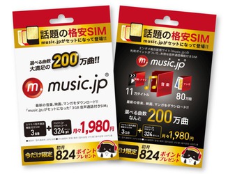 月額1,980円で、音声通話付3GBプランと、music.jpの「music.jp 300コース」(税抜300円/月)が利用できるというもの。最低利用期間は24ヶ月。