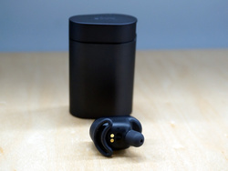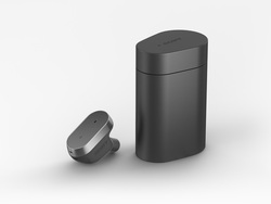 ヘッドセット本体と充電ケースのセット商品で、連続通話時間は約4時間で、連続待ち受け時間が約80時間。充電ケースにもバッテリーを内蔵し、連続通話約12時間分の電力を蓄えておくことができる。なお充電は本体をケースに収納した状態で行い、本体単体での充電は行えない。