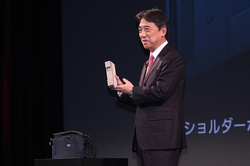 吉澤氏は今年春に現職に就任して以来、初めての発表会登場となる。冒頭、吉澤氏も開発に携わっていたドコモの携帯電話第一号機「TZ-802」(1987年)を紹介し、「誕生から約30年。これほど大きかった携帯電話は、いまやポケットに収まるのが当たり前になり、世界中の情報を手のひらで簡単に見られるようになった。もっと小さく、電池の保ちも長く、画面もきれいに…という要望に応えることで進化してきた携帯電話。ドコモは、これからもユーザーひとりひとりの要望に応えていく」と力強く語った。