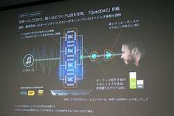 こだわったポイントとして、デジタル信号をアナログ変換した際の音質劣化やノイズを最小限に抑えるため、スマートフォンながらDACを搭載した点を挙げた。本機は、ESS製のDAC「ES9218」を搭載し、4基のDACを並列動作させる「Quad DAC」を搭載しており、シングルDACに比べてノイズを約50%低減するとのこと。また高インピーダンスのイヤホンへの出力にも対応する。