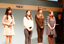 そのポータブル性の高さをアピールするためのデモンストレーションとして、女子大生タレントの近藤カコさんが登場。一般的な2in1のノートPCを反対に置いた天秤で重さの比較を行った。「講義でも必要なのでパソコンは毎日使っていますが、重いので持ち歩くのが大変。でもこれなら本当に軽くてカバンをパソコンのために整理する必要なく持っていけます」と、LAVIE Note Mobileの軽量・コンパクトさに驚いていた。