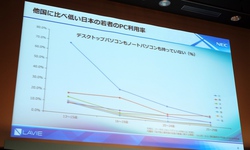 まずNECパーソナルコンピュータ株式会社 代表取締役 執行役員社長の留目真伸氏が登壇し、今回の新モデルについて「日本の学生は、スマートフォンなどの普及で世界的に見てもパソコンを持たない傾向となってきている。若者、学生層のボリュームは大きいが、例えば13〜15歳は1割しかPCを持っておらず、大学生になっても持っていないことも多い」と諸外国に対しての日本の学生層のPC普及率について言及。