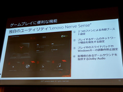 また、発表会では2月8日に発表したオールインワン型ゲーミングPC「ideacentre AIO Y910」にも言及。「タワー型PCをコンパクトにして27型モニターの裏側に収納したようなイメージのモデル」(藤井氏)だという同機が、いかにしてオールインワンというコンパクトさとゲーミングPCとしての高性能を両立させたかのこだわりを紹介し、「ゲーミングはやりたいけど場所をとるのでできないという人にも使ってもらえるモデル」とアピールした。