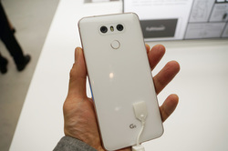 もう一つ、注目のスマホが誕生した。LGエレクトロニクスのフラグシップモデル「LG G6」だ。最大の特徴は約5.7インチ、アスペクト比が18対9というやや縦長の液晶ディスプレイを搭載したことだ。ディスプレイの大きさだけを聞けば“ファブレット”にカテゴライズしてもよさそうに思えるが、実は峡額縁デザインなので本体の横幅はとてもスリムにつくられている。片手で持ちながらでもサクサクと操作ができた。