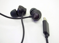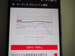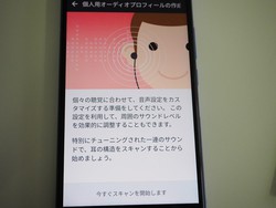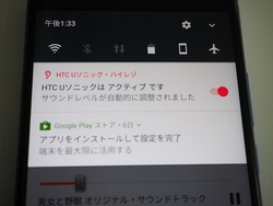 付属のハイレゾ対応イヤホンはUSB Type-C端子に接続。耳の形状を計測して聴こえを自動調整するオートキャリブレーション、ノイズキャンセリングを備える。実際にオートキャリブレーションを試してみたが、イヤホンを装着後に設定画面から「HTC Uソニック・ハイレゾ」メニューを開き計測を開始、イヤホンから測定用の小さなホワイトノイズが流れたと思うと、もう設定が完了していた。キャリブレーション効果はスワイプメニューから気軽にON/OFFできるので比較してみたが、ON時には明らかに高音・低音が伸び、ワイドレンジな出音になった。