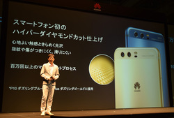 P10のダズリングブルー、P10 Plusのダズリングゴールドは、本体の背面に100万回以上のマイクロカットを施した「ハイパーダイアモンドカット」を採用。指紋や傷がつきにくいことが特徴になる。