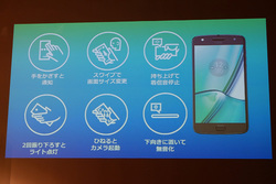 「moto GAMEPAD」についての詳細は発表されなかったが、Moto Zスマートフォンに装着することで、本体をゲームコントローラのように使用できるようになる拡張モジュールであるとしている。