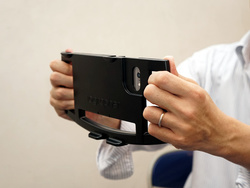 リグケースは、iPhone/iPadにケースのように装着することで、リグシステム(撮影周辺機器の取り付けベース)として機能するというもの。両手持ちのハンドルによって安定したカメラワークができるようになるともしている。