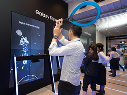 腕時計型ウェアラブルの「Galaxy Gear S3」を装着し、テニスやスイミングをバーチャル体験できる。上述のとおり、スコアを競うこともできる。