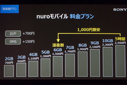 ソニーネットワークコミュニケーションズが運営するLTE通信サービス「nuroモバイル」は、翌月分のデータ通信容量を前借りできる「データ前借り」機能、深夜帯の5時間は通信料制限なしで高速通信を利用できる料金プラン「深夜割プラン」、国内通話の「10分かけ放題」という3サービスを8月1日より新たに開始する。