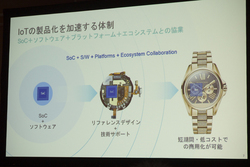 などがモバイル機器との違いと説明。サンダーソフトやArrow Electronics社など他社との協業は、こうした販売・サポート体制など業界の違いに対応する手段の一環と説明していた。