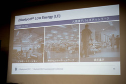 最初に登壇したコルドラップ氏は、「(Bluetooth meshは)ローパワーで大規模ネットワーク網を構築でき、産業グレードの信頼性・拡張性・セキュリティーを初めから備えている初めての規格かと思う」とIoT分野におけるBluetooth meshの優位性をアピールしていた。