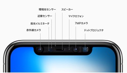 なおフロントカメラの周囲には、深度を測るドットプロジェクタや赤外線カメラ、投光イルミネータ、近接センサー、環境光センサー、マイク、スピーカーなどが集積されている。
