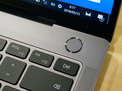 電源ボタン一体型の指紋センサーも搭載。起動も速く、電源オフ状態からのログインは約7.8秒で起動、さらにスリープ状態からのログインは約1.9秒で起動する。なお、バッテリー持続時間は約12時間。