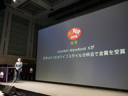 さらに昨年投入したノートPC「MateBook X」が「iF 2018 デザイン大賞」を受賞していること、さらに弊社主催のアワード「VGP」の受賞結果にも触れ、VGP 2018において、ノートPCとしては唯一金賞を受賞したこともアピールした。
