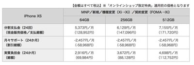 ドコモ、iPhone XS/XS MaxとiPhone XRの販売価格を発表。最長24回払い、XRは1,647円/月から