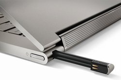 Lenovo Yoga C930は、Yogaシリーズの新フラグシップモデルで、ディスプレイが360度回転して4つのモードで利用出来る13.9型モバイルPC。サウンドバー機能付きヒンジを採用した点が特徴で、スタンドモードやテントモードでも正面からサウンドが聞こえる設計になっている。サウンドバーはドルビーと共同開発したもので、トゥイーターを2基と、本体底面部にウーファーを2基搭載。ドルビーアトモスにも対応している。