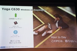 他にもYogaシリーズのコンバーチブルPC最上位モデルとなる「Yoga C930」、ウルトラスリムノートPC「Yoga S730」も紹介された(関連ニュース)。Yoga C930はドルビー共同開発のサウンドバー搭載ヒンジが特徴で、「モバイルPCで本格的な音響を体験できる」とアピールした。