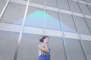 「ガラスアンテナ」は、透明/透視性のある導電材料とガラスを組み合わせたもの。AGCのガラス施工技術「アトッチ工法」により、建物の内側から窓ガラスに貼り付けるかたちで設置し、屋内から屋外をエリア化する事が可能となる。開発にあたっては、AGCが製法/施工方法の確立、ドコモがアンテナ特性の検討や実証実験を主に担当した。