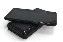 スマートフォンなどへのワイヤレス充電機能を備えたモバイルバッテリー。家では据え置きタイプとして、外出時にはポータブルで使用することができるとしている。