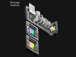 また、本技術実現のために独自の「ペリスコープ(潜望鏡)構造」も採用。レンズセットの横方向の配置と屈折を利用して、スマホ筐体の幅と厚みを最大限に活用することで省スペース化を図り、スマホ本体の薄型化と10倍ズームとを両立させるという。