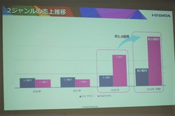同社ではゲーム市場向けに、ゲームのプレイ動画をメモリーカードやPCに保存、また、そこから配信するためのゲーム用キャプチャーデバイスとゲーム用途に特化した液晶ディスプレイ「GigaCrysta」シリーズを展開する。2製品の売上げ規模は、2016、17年に6億円強、売上構成比では1%%程度に過ぎなかったが、18年は前年比2.5倍の15億円強、今年はさらに同1.6倍の約26億円にまで伸長。売上構成比も5%に達すると予測する。