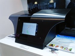 出展の目玉の一つは、加振器「Vibtone」と音声認識用マイクを組み合わせた車載用ダッシュボードのデモンストレーションだ(関連ニュース)。振動を発生させるアクチュエーターをダッシュボードの内部に装着してスピーカーの役割を持たせるという提案だ。