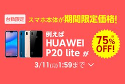 HUAWEI「P20 lite」が75%オフ! 楽天スーパーSALEでスマホ12機種が台数限定割引