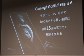 背面パネルは「Wave finish」と名付けられた光沢感のある仕上げを採用。ディスプレイは2,280×1,080のフルHD+ IPS液晶で、1mの高さからの落下試験にも平均15回は耐えられるというコーニング社「Gorilla Glass 6」を搭載。従来モデルに比べ2倍の堅牢性を実現しているとのこと。
