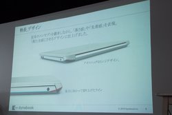 キーボード印字はキートップ中心部に太く印字し、はっきり見やすく表示。バッテリーはモバイルモデルで採用したリチウムポリマーバッテリーを搭載。従来より長時間の最大9時間駆動が可能で、30分で約3.5時間分(全体容量の40%)を補充できる急速充電にも対応する。