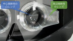 スマートフォンを取り付けて利用する一般的なVRゴーグルは、視野角が狭く、穴から映像を覗いているように感じられることに対し、本VRゴーグルでは、視野の中心領域ではくっきりと、周辺部分はぼんやりと映像を見るという人間の視野特性を活用し、凸レンズに加えその周りに高倍率の特殊な構造のレンズを配置することで、あたかもその場にいるかのような没入感の高いリアルなVR映像を体験できるとしている。