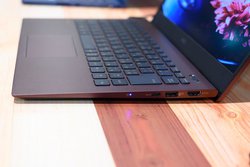 デザインではヒンジや排気口を極力見せないように配慮し、シンプルな形を目指した。キーボード面も全面フラットとしており、素材にはMg-Alダイキャストが使用されるほか、排気口はMg-Alの削りだしとなっている。また13.3型のディスプレイにはナローベゼルを採用。映り込みを抑えるノングレアとなり、輝度は従来から1.5倍向上した。解像度はフルHDで、パネルにはIPSを採用する。