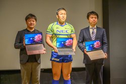 大和田選手は今回のPCについて尋ねられると「今日は電車で移動してきた。満員電車でPCを持っていると不安だけど、これ(LAVIE Pro Mobile)だったら安心だなと思った」と話す。そしてメッセージを求められると「6月22日から開催されるトップリーグカップ、優勝を目指してがんばりますので、試合会場まで足を運んで頂き、応援よろしくお願いします」とアピールした。