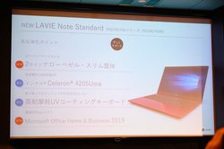 そしてLAVIE Note Standardは、エントリーモデルながらもディスプレイの左右をナローベゼル(狭額縁)としたモデル。狭額縁化したことで筐体の幅は15mm減の363mm、奥行きは5mm減の255mmとなり、フットプリントが約6%小型化した。また厚さは22.9mmの薄型筐体を採用する。