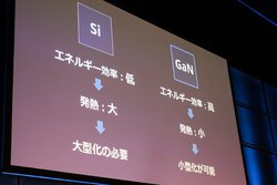 また同じ大きさであっても、高い出力に対応することができるため、近年対応製品が増えているUSB端子の新規格「USB-C」、100Wまでの出力でノートPCも充電可能な「USB Power Delivery(PD)」といった次世代の高速・大容量充電技術に、GaNは親和性が高いという。