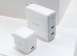 そのほかPowerIQ 3.0には対応しないものの、GaNを採用したモデル「PowerPort Atom PD2」もラインナップ。こちらはUSB PD対応のUSB-Cポートを2つ搭載しており、2ポート合計で60Wの出力に対応している。価格は4,599円(税込)を予定しており、外形寸法は約68×69×28mm、質量は約125g。
