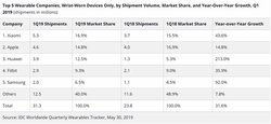 ファーウェイは、調査会社IDCの公表した2019年第1四半期ウェアラブルベンダーのグローバルランキングにおいて282.2%の成長を記録し、同社のウェアラブル端末が出荷台数で世界第3位となったことを発表した。これにより同社は、同市場において2四半期連続で世界一急成長するブランドになったとのこと。