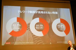 そこで実施された自社調査によると、日本においてテレワーク制度の利用者は4.9%。その背景には「職場の方が生産性が高い(62.7%)」「職場の会議に参加できない(44.1%)」「セキュリティが心配(42.0%)」という意見があったとのこと。これを改善すべく、今回の新製品に至ったという。