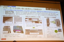 ともに開口部は穴の大きさなどを調整したと話しており、さらに最短距離で耳に音を届けるため、振動板を筐体開口部になるべく近づけたと話す。ウーファーユニットは従来モデルから75%体積が向上しており、またユニット自体をラバーブッシュでフローティングさせることで、筐体に振動が伝わらないように配慮した。この構造は水天宮の免震構造を参考にしたという。