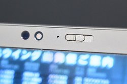 会議のためのマイクは、筐体液晶部の上面に搭載する。従来はWEBカメラの左右に設置されていたため、PC前の使用者の声を拾う想定だったが、上向きの配置になったことにより、360度の全方向から録音できるようになった。感度も2倍にになっている。