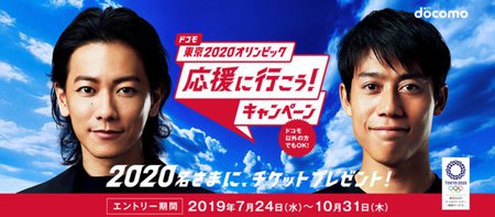 NTTドコモは、東京オリンピックの開会式・競技チケットなどが2,020名に当たるキャンペーンを実施する。期間は2019年7月24日から10月31日まで。ドコモユーザーでなくても、ドコモの会員登録をすれば申込が可能。また、応募者にはもれなくLINEの「オリジナルスタンプ」がプレゼントされる。