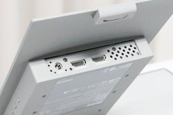 端子類では、映像入力として2基のHDMI(DeepColor、HDCP2.2/1.4対応)を搭載。4K60Pの入力に対応する。その他の端子として、ラインアウト(ステレオミニジャック)、ヘッドホン(ステレオミニジャック)も搭載。1.0W×2のステレオスピーカーも備える。