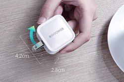 出力は30Wで、搭載ポートは1つ。GaNを採用して発熱問題を改善することで、従来の同等性能の充電器と比較し、約40%の小型軽量化を実現したという。外形寸法は42×42×30mmで、質量は約60g。プラグは折りたたみ可能。