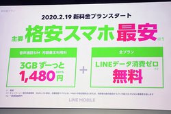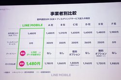 LINEモバイル、“主要格安スマホで最安” の月額1,480円プラン。音声SIM 3GB+LINEデータフリー