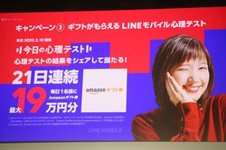 さらに、回線契約/未契約とわず誰でも参加できるキャンペーンとして「今日の心理テスト」を本日2月10日から3月1日まで21日間連続で実施する。1日1問行われ、毎日応募可能で、テスト結果をTwitterでシェアすると毎日1名にAmazonギフト券が抽選でプレゼントされる。なお初日の2月10日は1,000円分、日々金額が増加し、最終日の3月1日は190,000円分が当たるとのこと。