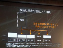 こうした点について、発表会に出席したメディアからは「残価を高く設定すれば実質的な端末代金値引きにも利用できてしまうが、総務省からの指導などは大丈夫なのか?」「話題の機種の残価を高くして(実質的に値引きして)その分を他の端末で回収するようなビジネスモデルにはならないのか」といった質問も。