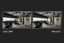 独自技術「DyAc(Dynamic Accuracy)」をアップデートしたという「DyAc+」を搭載。従来よりゲーム中の激しい画面の揺れを最小限に抑え、鮮明な画像を表示できるとのこと。これにより、「まるでゲームの世界に入り込んだような没入体験」が行えるとしている。