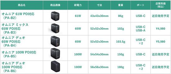 AUKEYは、「Omnia(オムニア)」シリーズのGaN採用急速充電器5モデルを4月末に発売する。販売はビックカメラやヨドバシカメラなどの家電量販店、Amazonや楽天など主要ECサイトで行われる。
