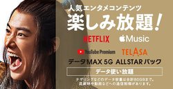 「データMAX 5G ALL STARパック」ではデータ通信が使い放題に加え、Netflix(ベーシックプラン)/YouTube Premium/TELASA/Apple Musicと4つの動画/音楽配信サービス(月額合計約3,300円相当)をセットにした料金プラン。6月以降スタートとされていたが、このたび提供開始日が正式決定したかたち。