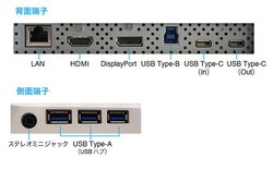 インターフェースとして、背面にLAN、HDMI、DisplayPort、USB Type-B、USB Type-C、USB Type-C(入力/出力でそれぞれ1系統)を搭載。加えて側面にステレオミニジャック、USB Type-A×3を備える。